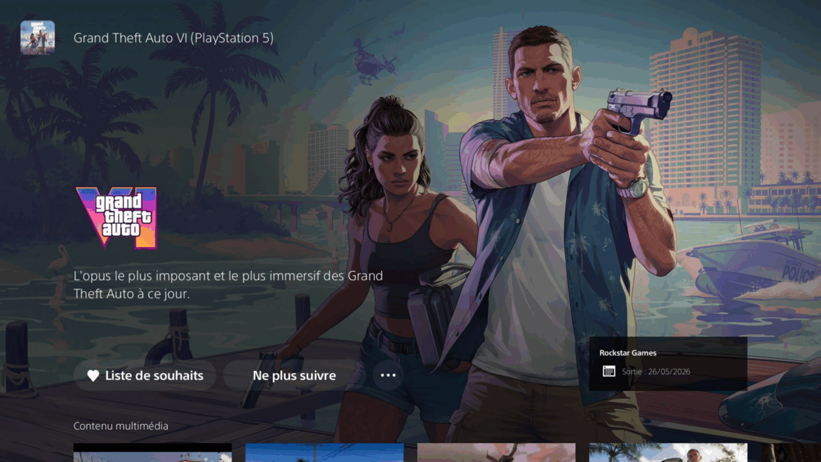 Without any major official announcement, Sony and Rockstar have added GTA VI to the PlayStation Store, accessible via the console or mobile app. For now, players cannot purchase or pre-order the title, but they can add it to their wishlist, allowing them to receive a notification as soon as the game becomes available for sale.